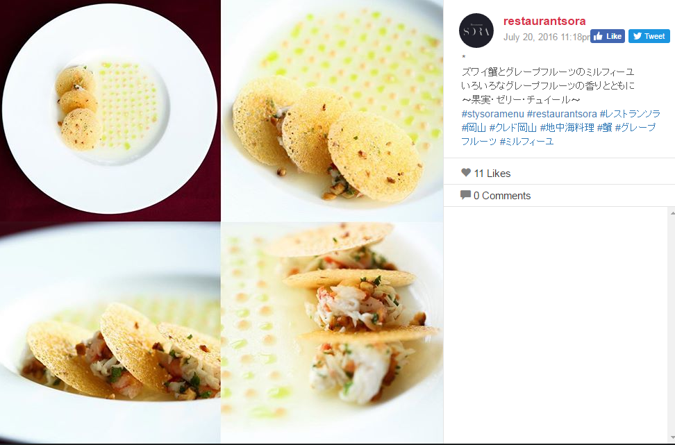 SORAのインスタグラムでは色鮮やかなお料理を