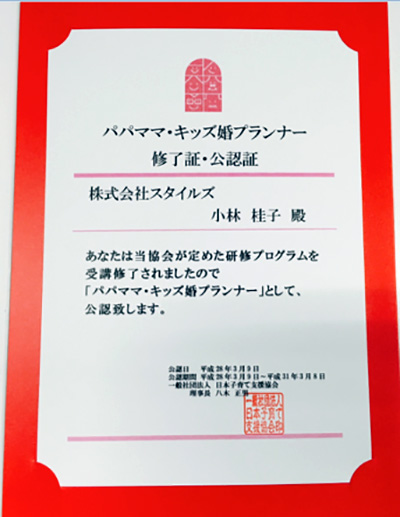 無事に、パパママ・キッズ婚プランナーの公認をして頂きました!