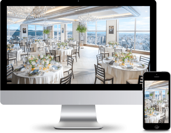 オンライン相談サポートは、スマホやPC でプランナーと顔を合わせながら会場紹介やご相談、お打ち合わせができるサービスです。ご都合のよい時間を有効活用し、納得いくまでじっくりとご相談ください。